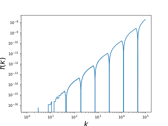 This function computes and plot the function f(k), up to a kmax