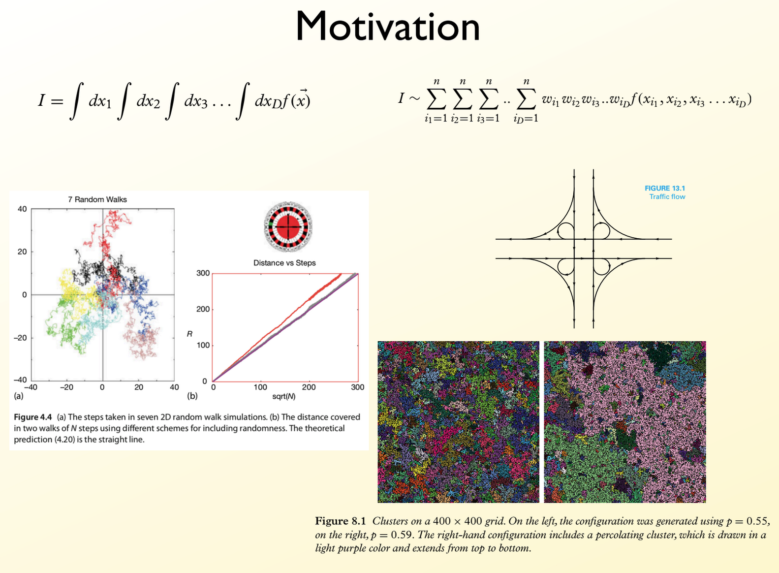 Generating random numbers is a very old computer science problem with many useful applications. Here we will study how to use the rng (random number generators) in c++, and then use to sample regions, compute integral, and perform simulations.